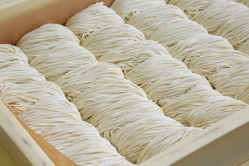 Sōmen—thin white noodles made from wheat flour. They are usually served cold in summertime with dipping sauces but they can also be used in soups and other types of hot dishes.Ramen noodles