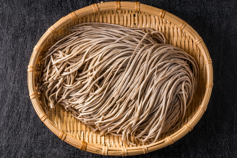 Soba—made from buckwheat and wheat flour, soba noodles are available dried or fresh and can either be served cold with dipping sauce or with hot broth. Some examples of soba dishes are tempura soba, kitsune soba, and zaru soba (chilled).