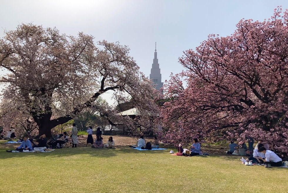 Hanami, or flower viewing, is a celebratory event when people visit parks and gardens to have a picnic or gathering beneath the breathtaking sakura trees in full bloom. Shinjuku Gyoen, which is just a few minutes’ walk from KCP, has over a thousand cherry trees of different varieties. It’s one of the best places in Japan to hang out and relax under the gorgeous blooms.